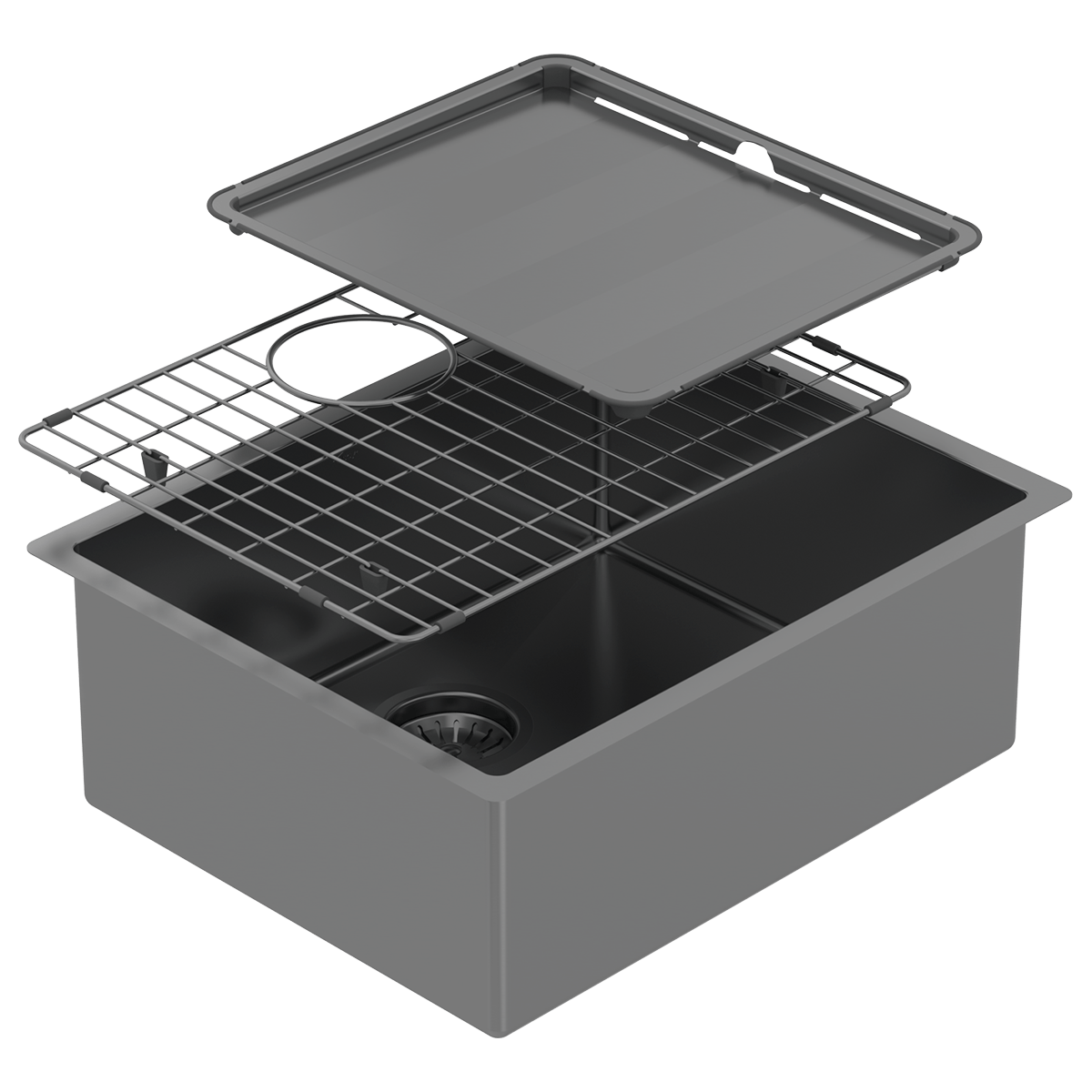 Our Piazza Finished sinks are achieved through a process called ‘Physical Vapor Deposition (PVD)”. The process ensures a coating that is both scratch resistant and impact-resistant. Using the Pearl Arc 3-step process we combine the best of both durability and aesthetics, making Abey Australia’s sinks stand out in terms of both performance and design Each sink comes with a matching drain tray and protective grid in your chosen finish.