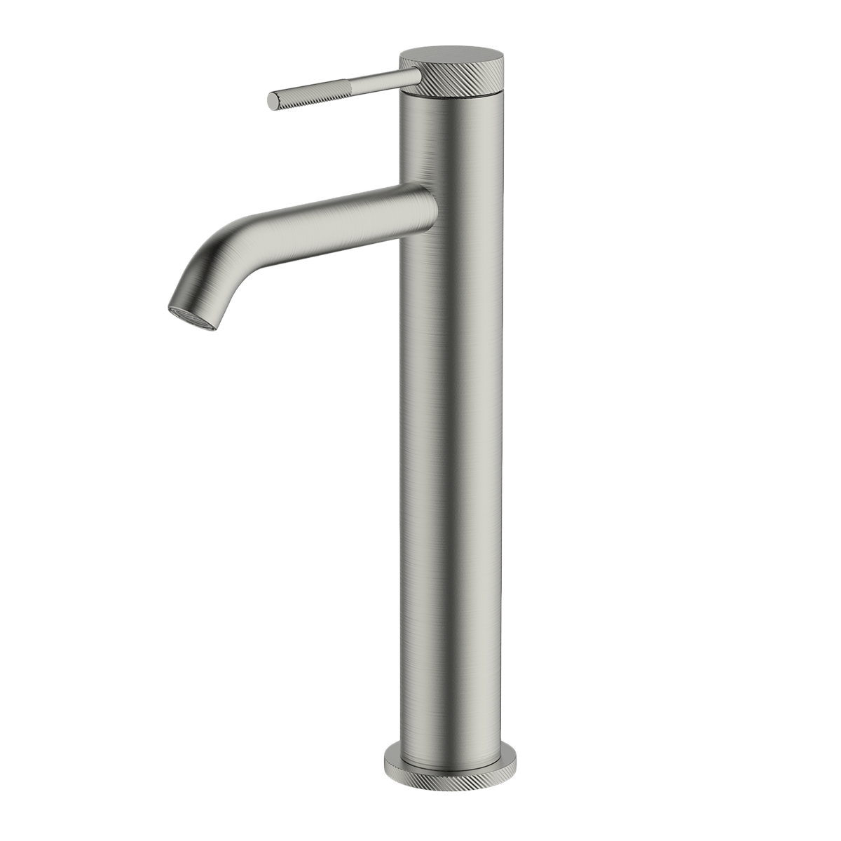 Poco Knurled High Basin Mixer - Brushed Nickel PVD